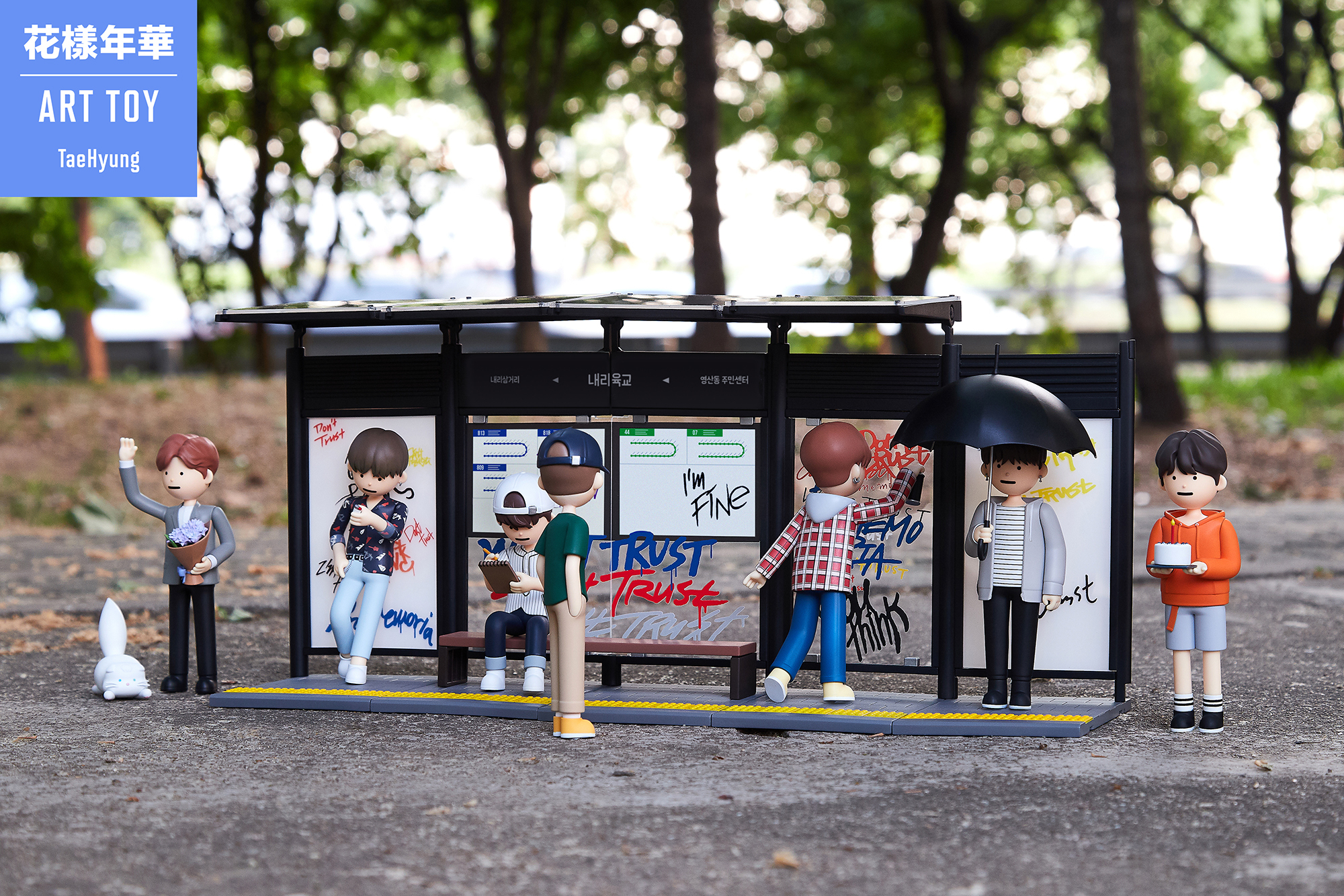 • 內容物 : 1 公仔 +  1 巴士站 + 1 公仔站台 + 1 公仔名片